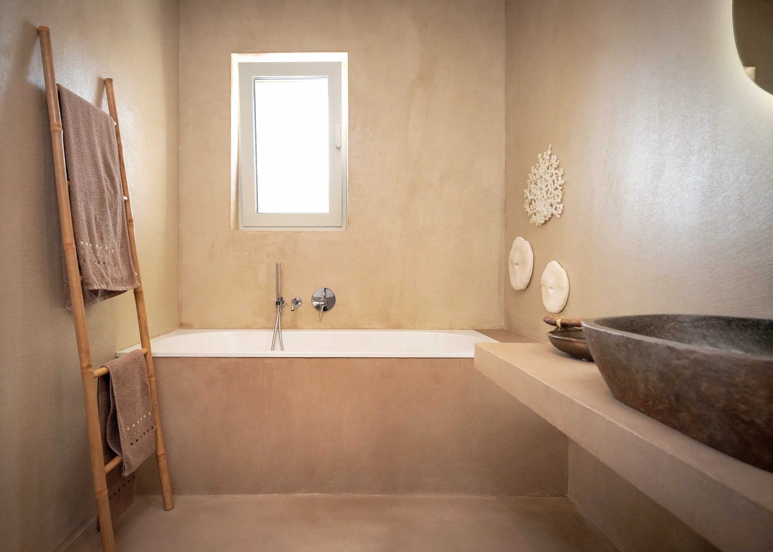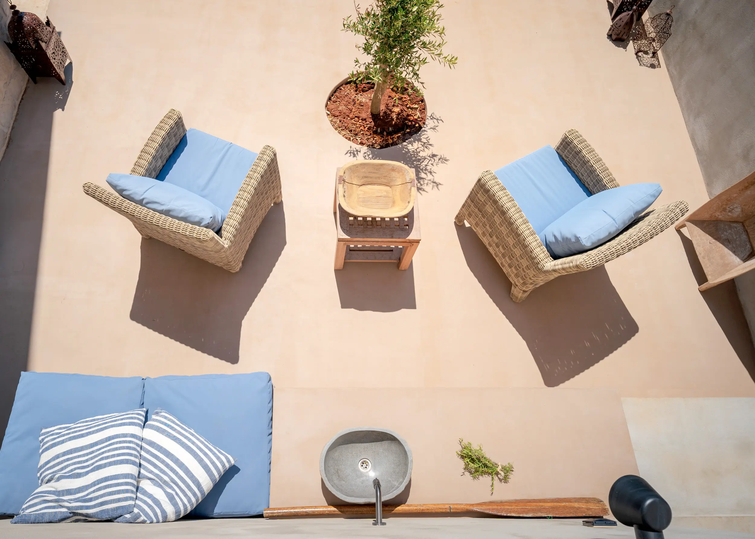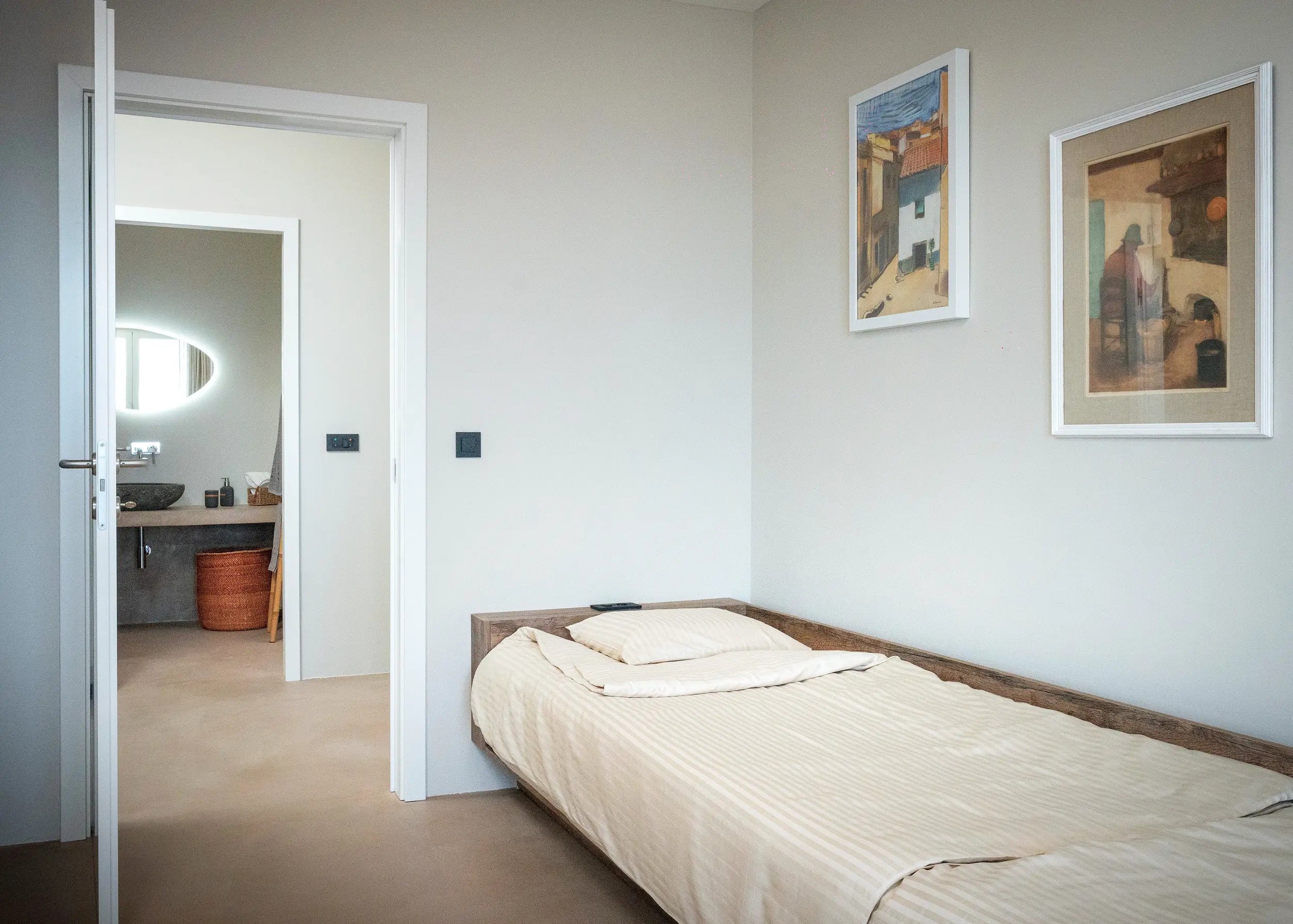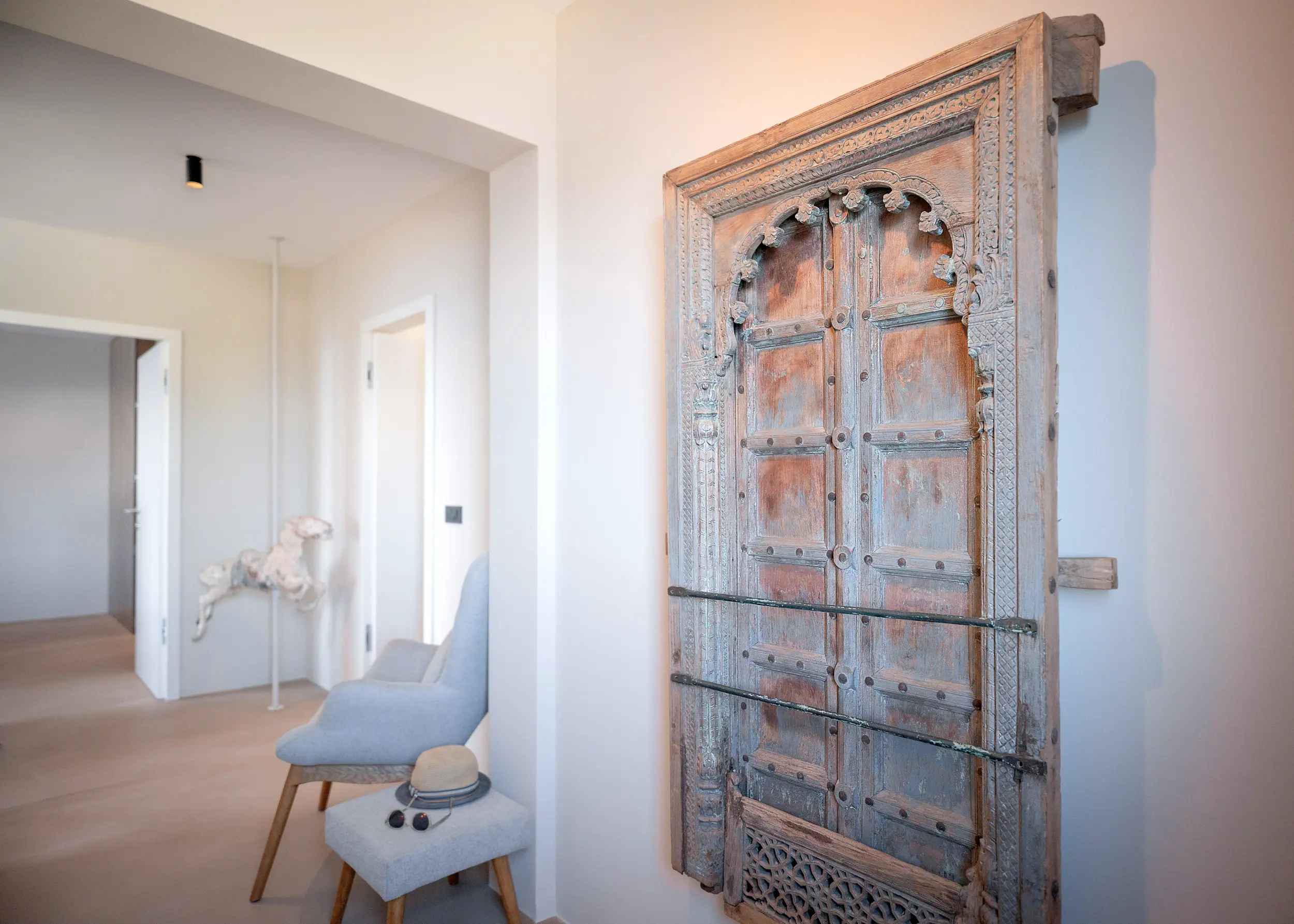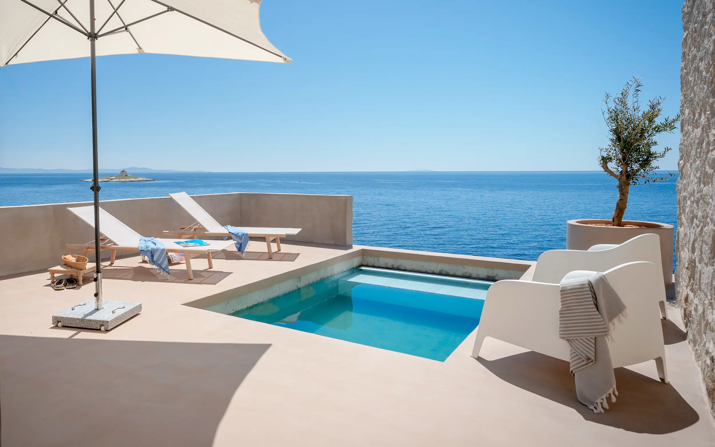 Step outside onto the terrace to enjoy a private pool, outdoor shower, and a covered lounge area—ideal for relaxing or entertaining. Carefully curated interiors, featuring natural materials and globally sourced artwork, create a warm yet sophisticated ambiance.