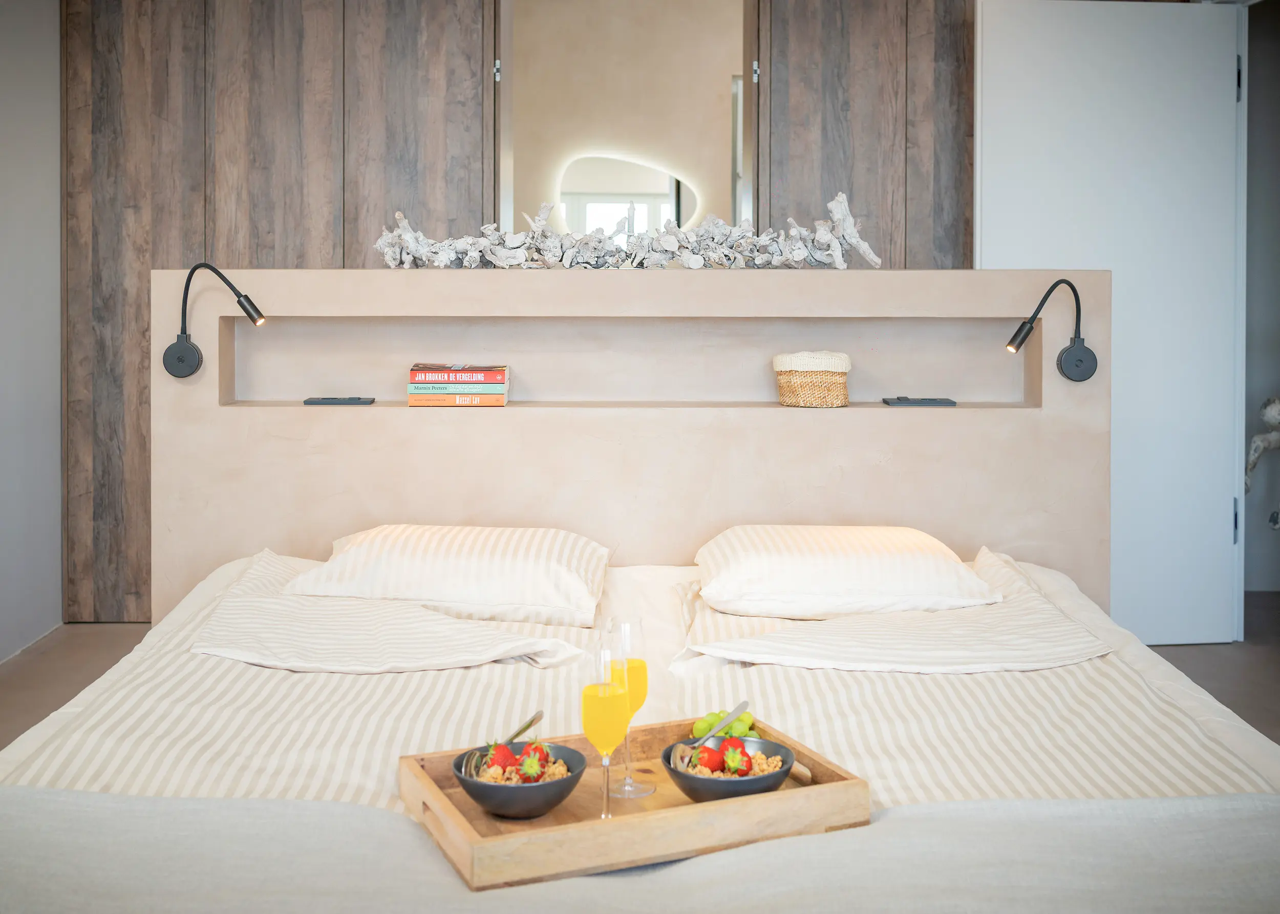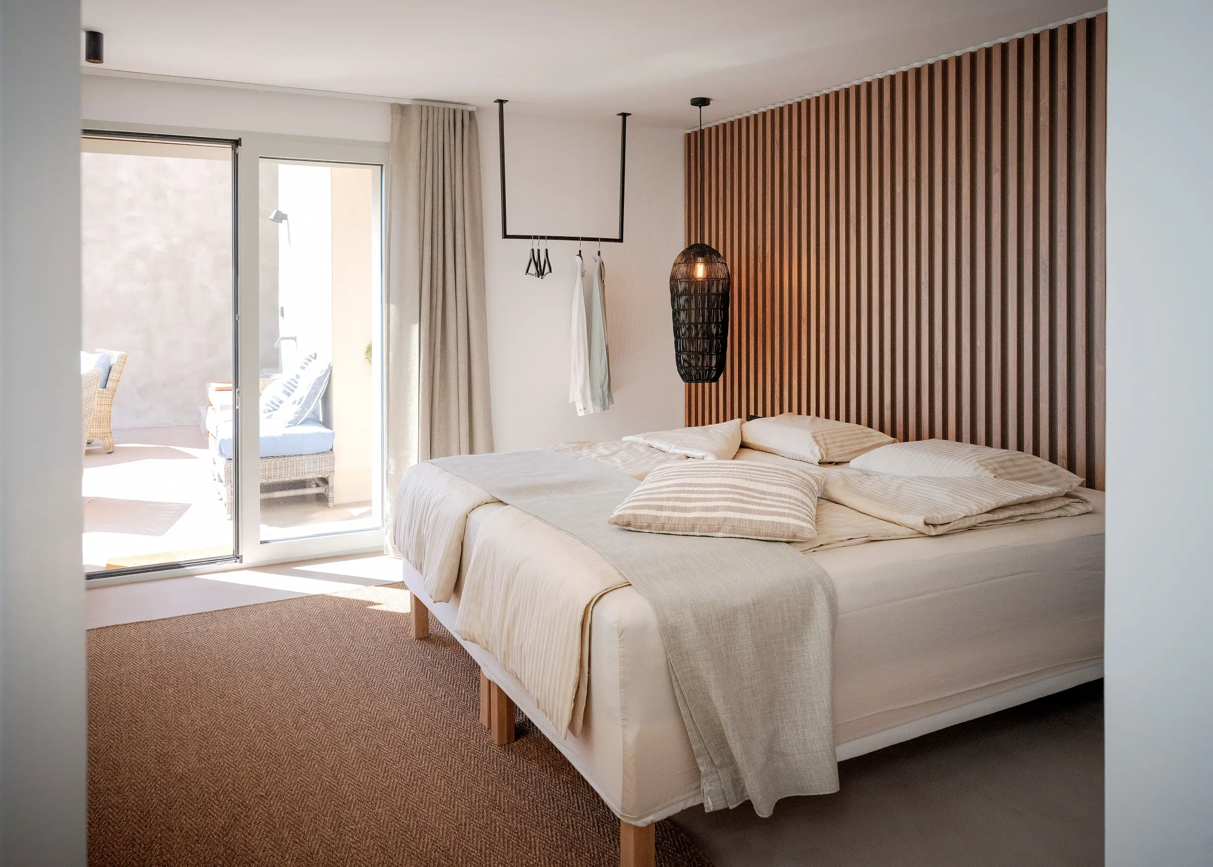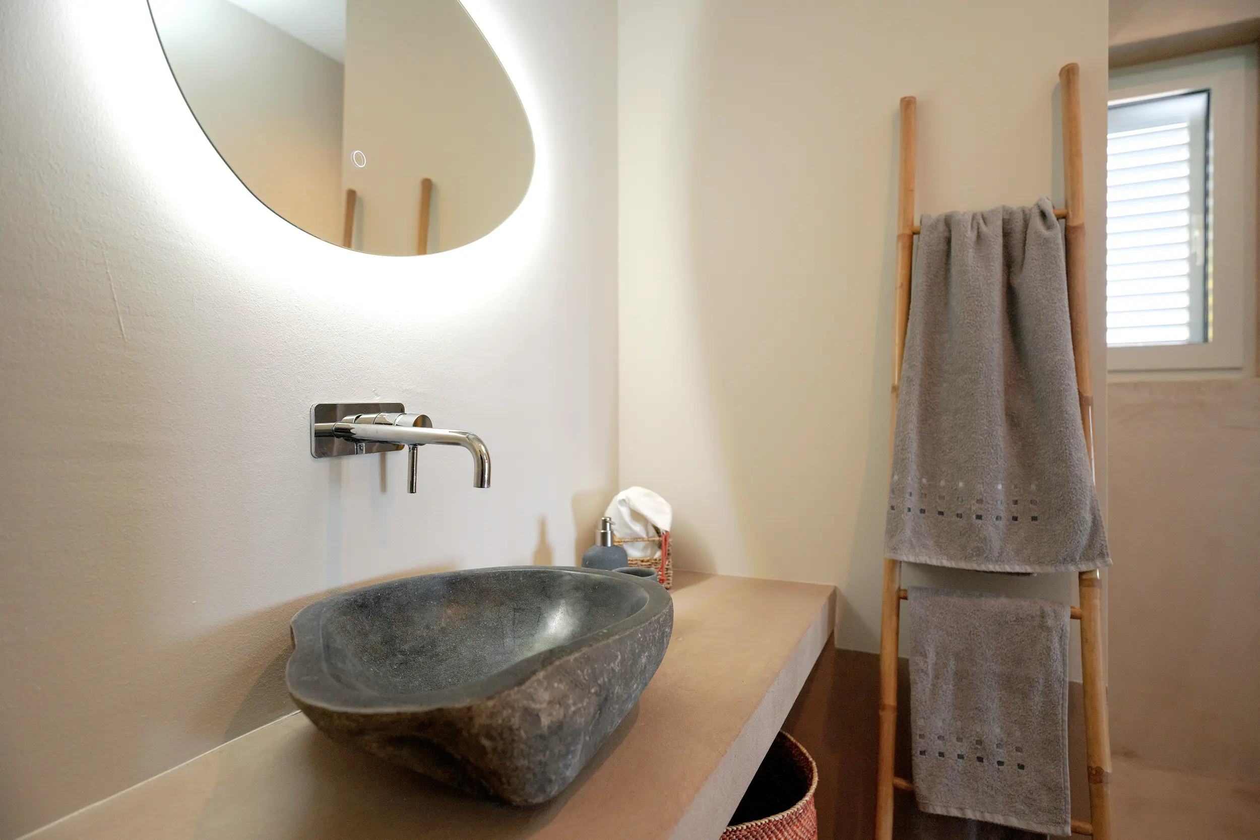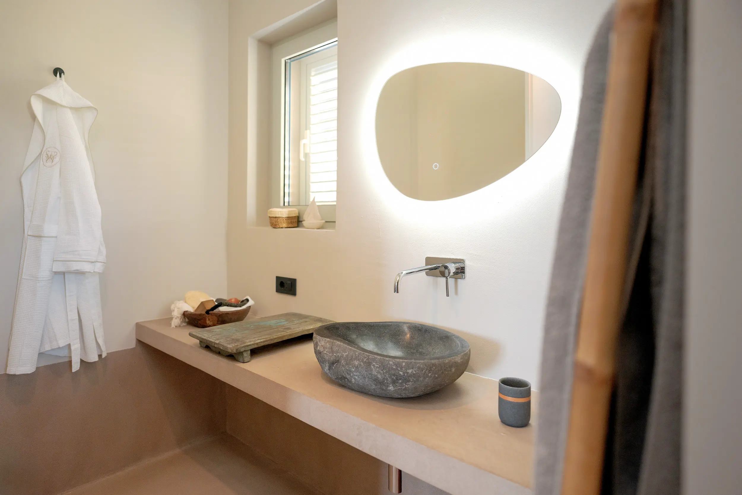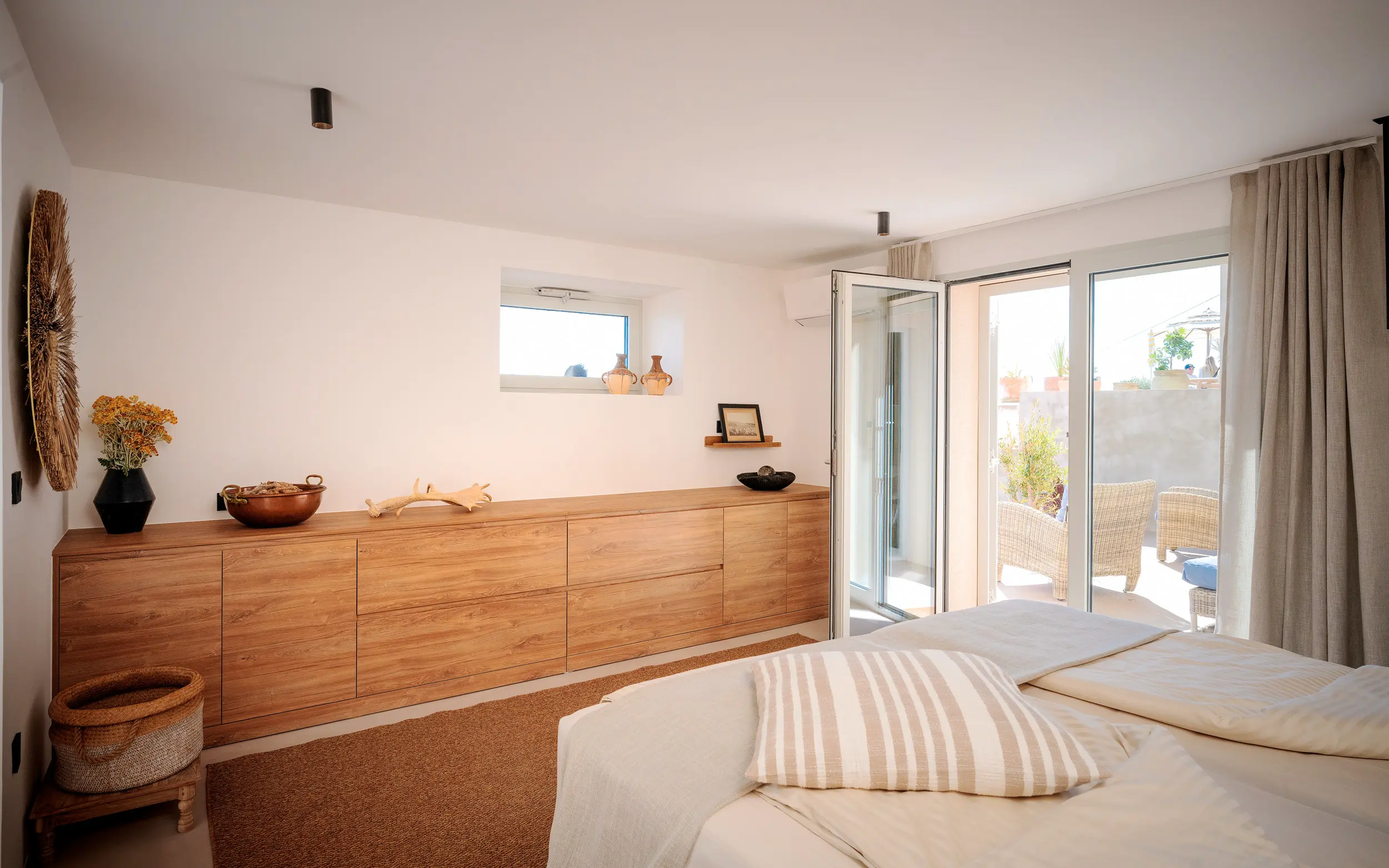 Step outside onto the terrace to enjoy a private pool, outdoor shower, and a covered lounge area—ideal for relaxing or entertaining. Carefully curated interiors, featuring natural materials and globally sourced artwork, create a warm yet sophisticated ambiance.