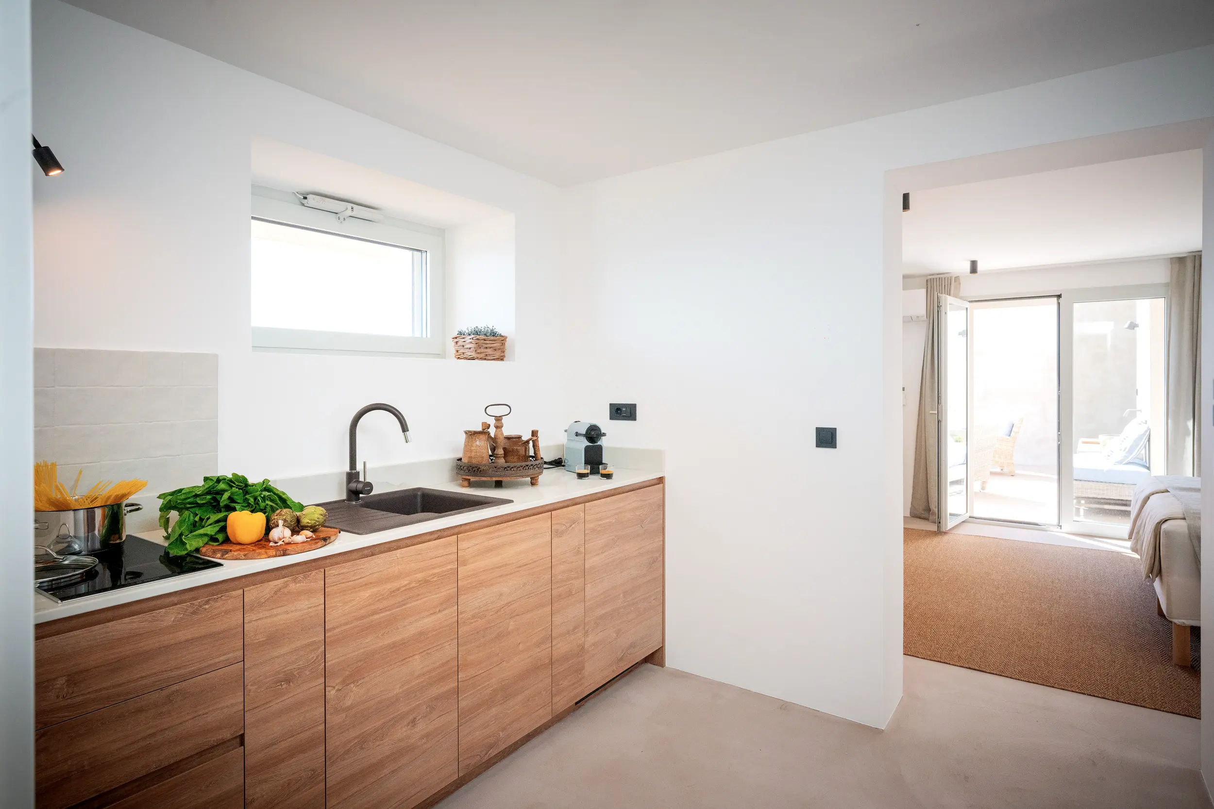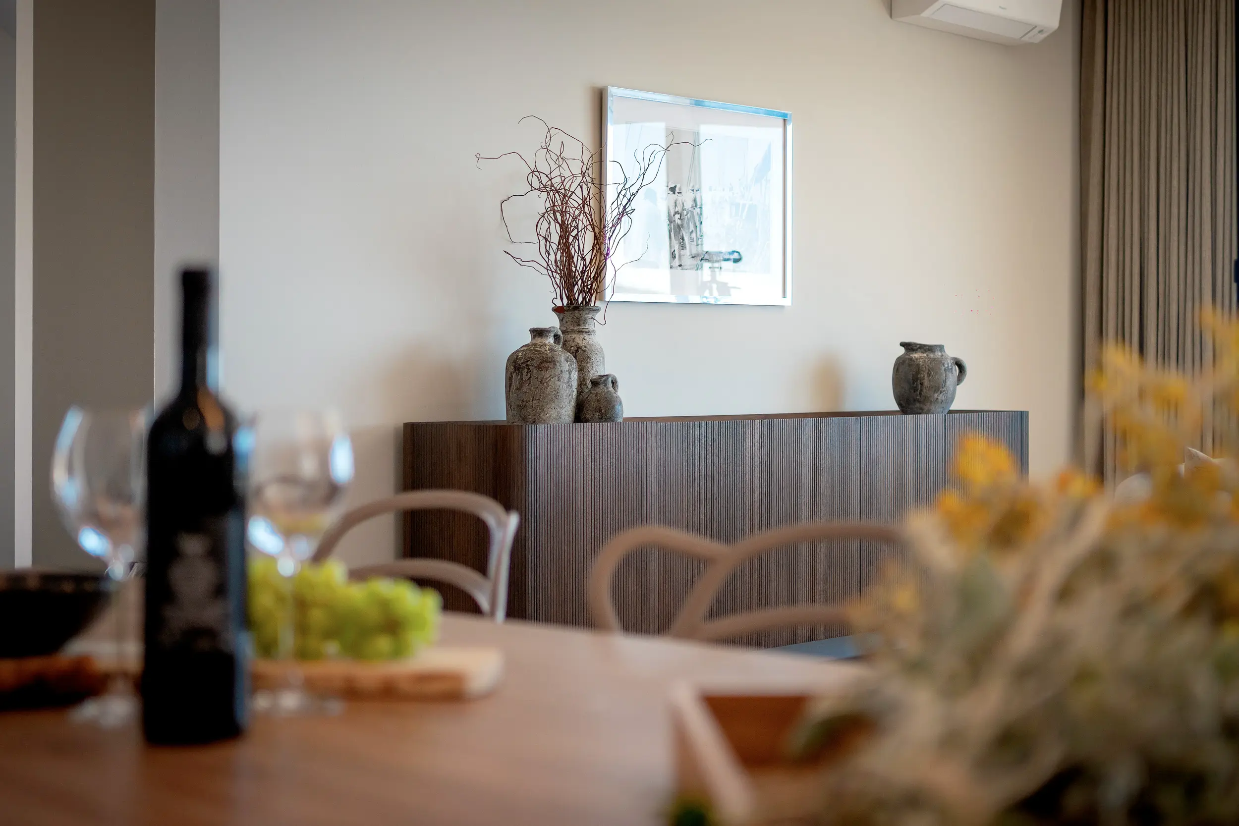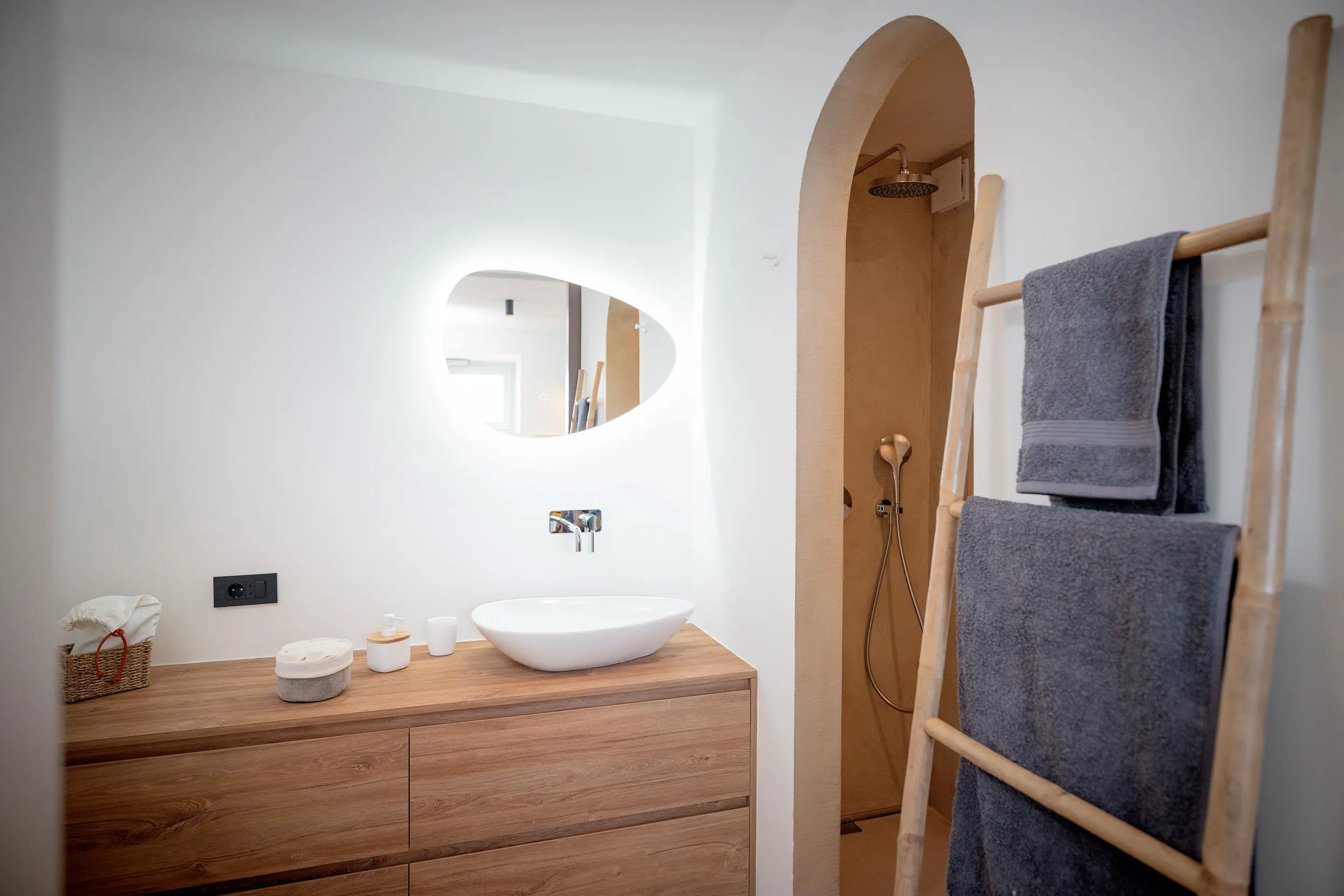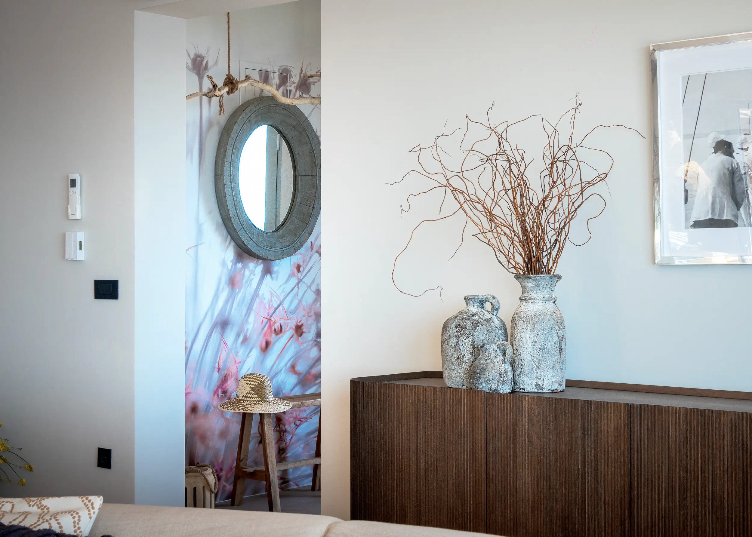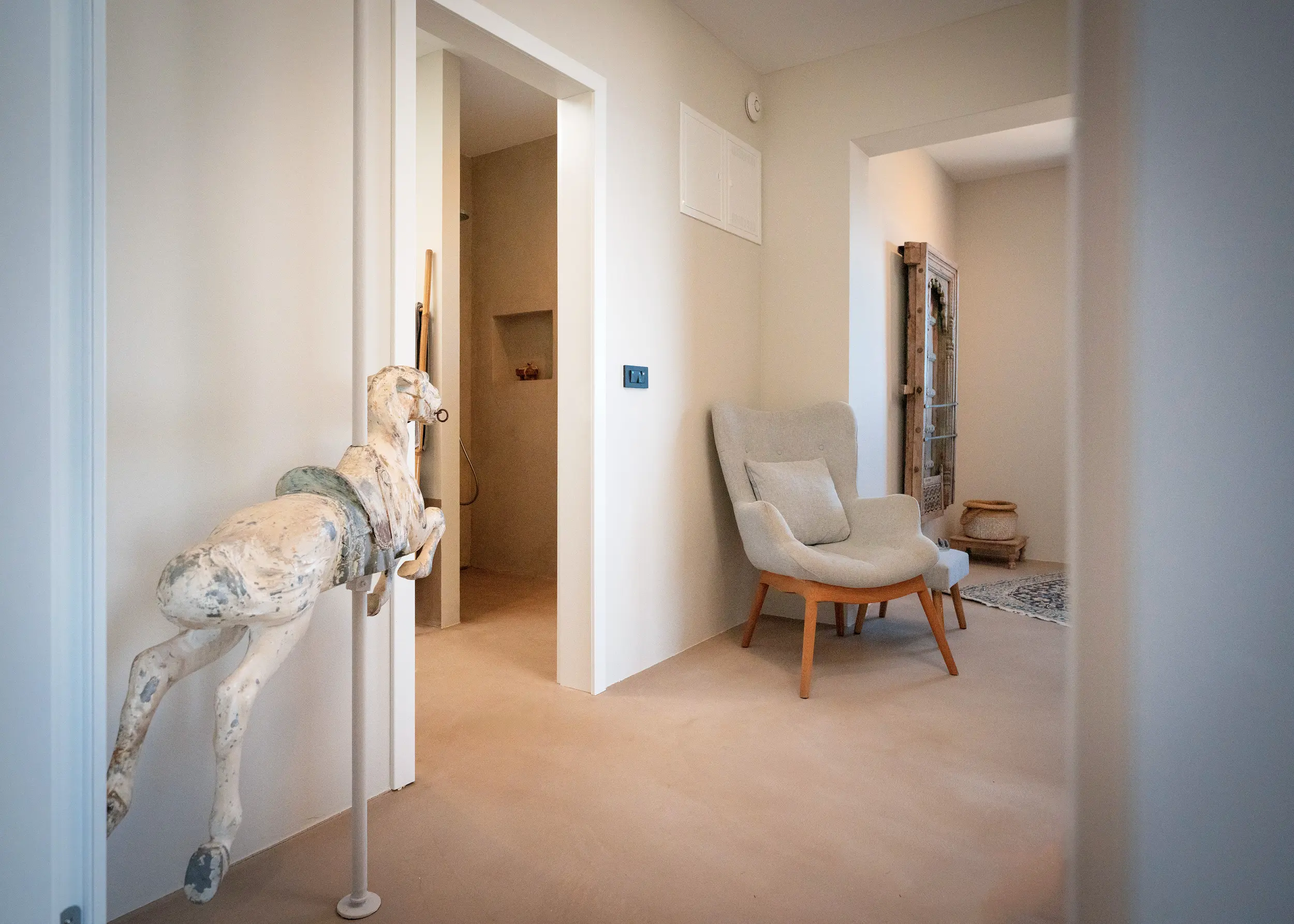 Step outside onto the terrace to enjoy a private pool, outdoor shower, and a covered lounge area—ideal for relaxing or entertaining. Carefully curated interiors, featuring natural materials and globally sourced artwork, create a warm yet sophisticated ambiance.